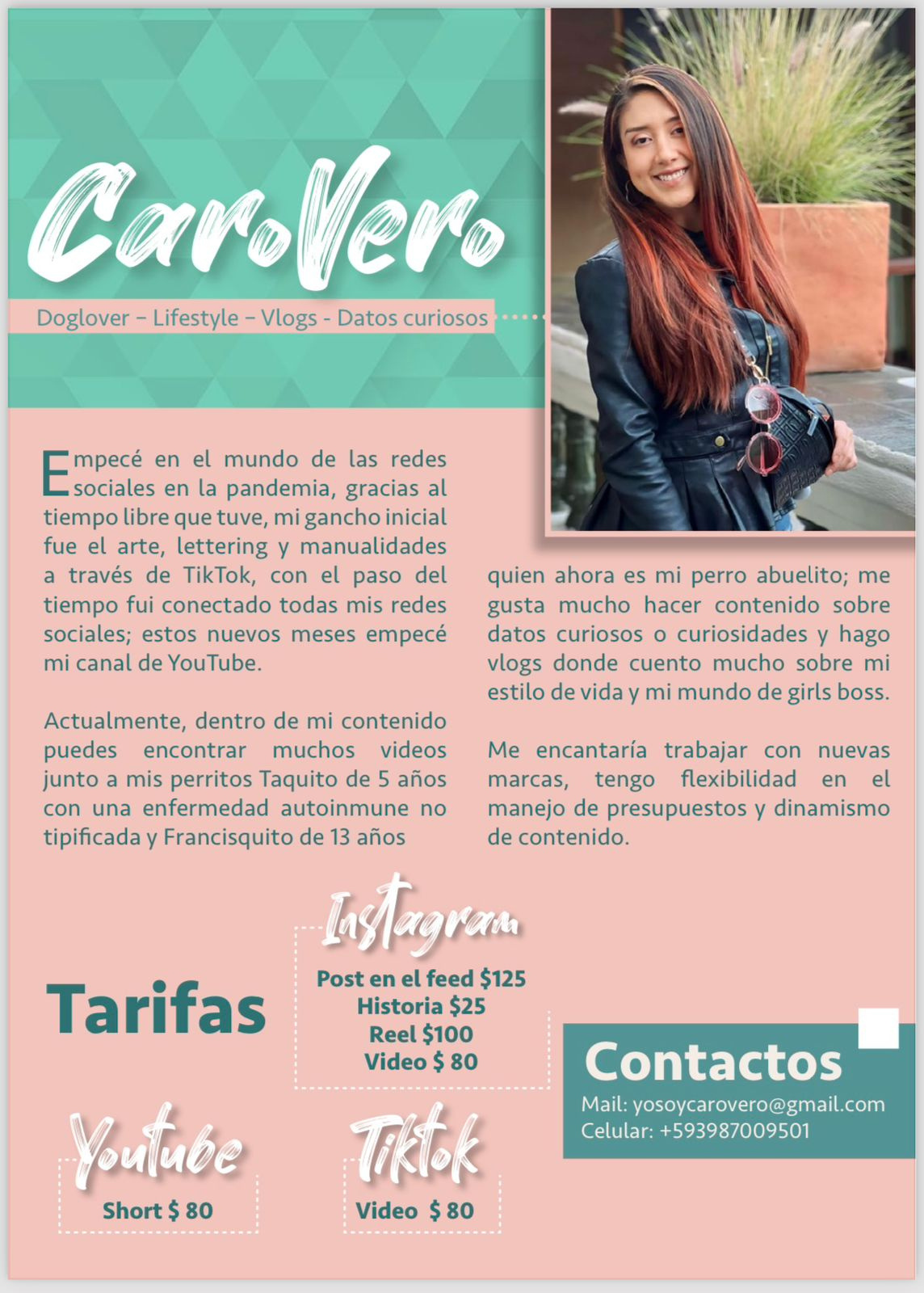 Actualmente, dentro de mi contenido puedes encontrar muchos videos junto a mis perritos Taquito de 6 años con una enfermedad autoinmune no tipificada y Francisquito de 14 años quien ahora es mi perro abuelito.
